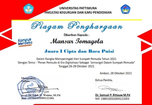 - Lomba Cipta dan Baca Puisi Gebyar Sumpah Pemuda FKIP Universitas Pattimura Tahun 2021